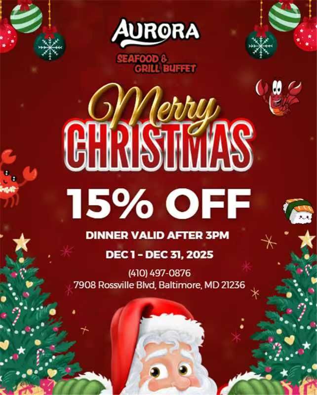 - Aurora Seafood & Grill Buffet is a family-friendly all-you-can-eat destination in Baltimore, MD.